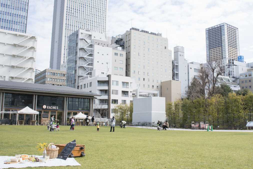 池袋駅から徒歩すぐ、青々した芝生が気持ちのいい南池袋公園にやってきました。ビルに囲まれた公園ながらのんびりした雰囲気で、人気のピクニックスポットです。