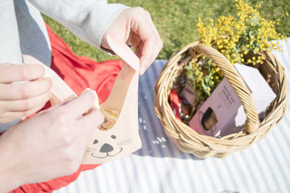 日が傾いてきたらそろそろピクニックパーティーもお開き。余ったフードを持ち帰る袋もキュートだと楽しいですね。家でも今日のピクニックを思い出して、嬉しい気持ちになれそう♪