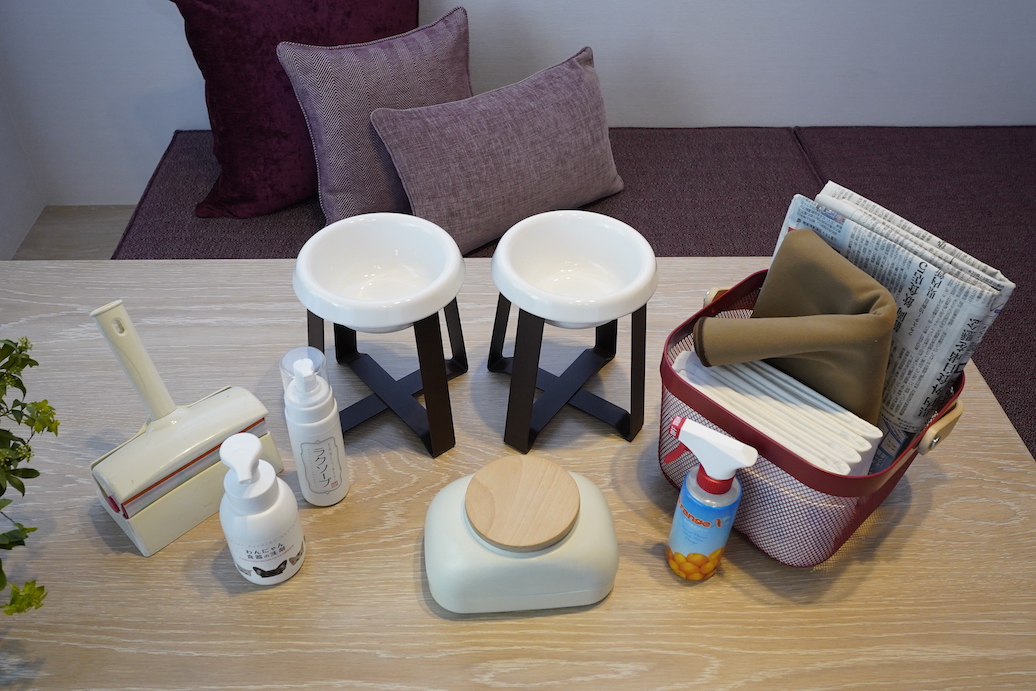 服についたペットの毛を取る“コロコロ”や、犬用の食器、ペットシャンプー、粗相をした時にさっと使える新聞紙、ウェットティッシュ、トイレシート用のゴミ箱まで。愛犬家のかゆいところに手が届くアイテムが揃い、ぬかりがありません……!