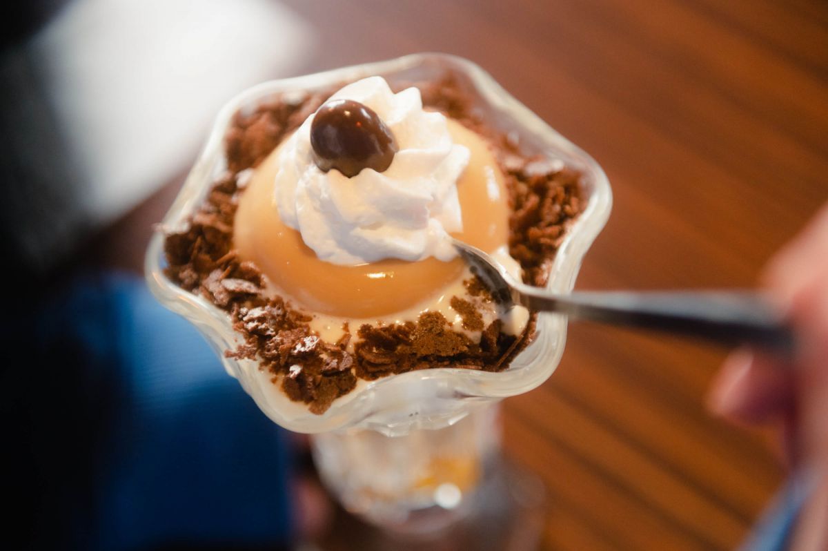 うんまぁぁぁぁぁぁああ!!!まさに「塩キャラメル」という甘じょっぱさがたまりません。一番下にはマンゴー、そしてキャラメルクリームやカスタード風アイス、ホイップにプリンと複雑に折り重なる甘味が不思議と口の中でベストマッチ!なんだこれ、子供が食べるにはちょっともったいないくらいだ!(笑)と思ってしまうほど大人の舌を満足させてくれます。(もちろんお子様にもどうぞ!)