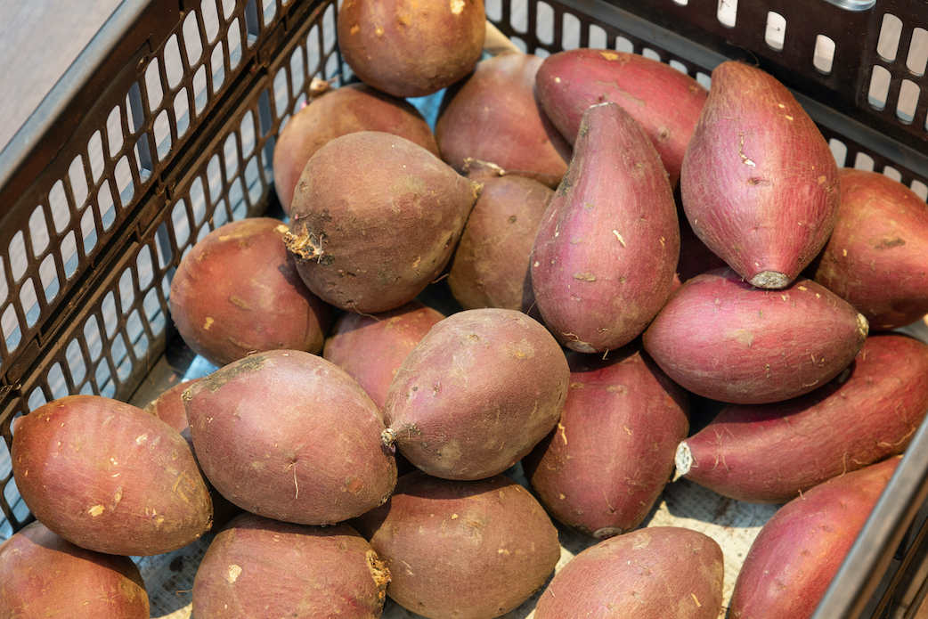 こちらは紅あずまという、珍しいさつまいも。焼き上がると美しい黄金色で甘すぎず、“ホクホク”と“しっとり”を兼ね備えたバランスよい舌ざわりが楽しめます。