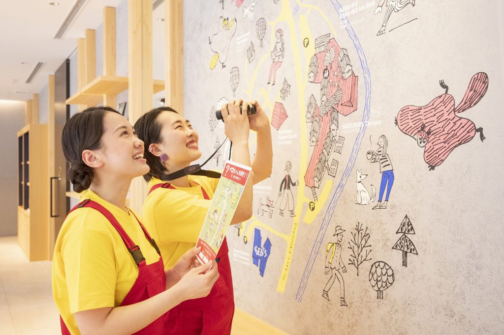 「BEB5軽井沢」は、レストランや温泉などがある「軽井沢星野エリア」内に位置するホテル。約1万坪の広さがあるエリア内3か所に隠れたペコちゃんを見つけるアクティビティが楽しめます。