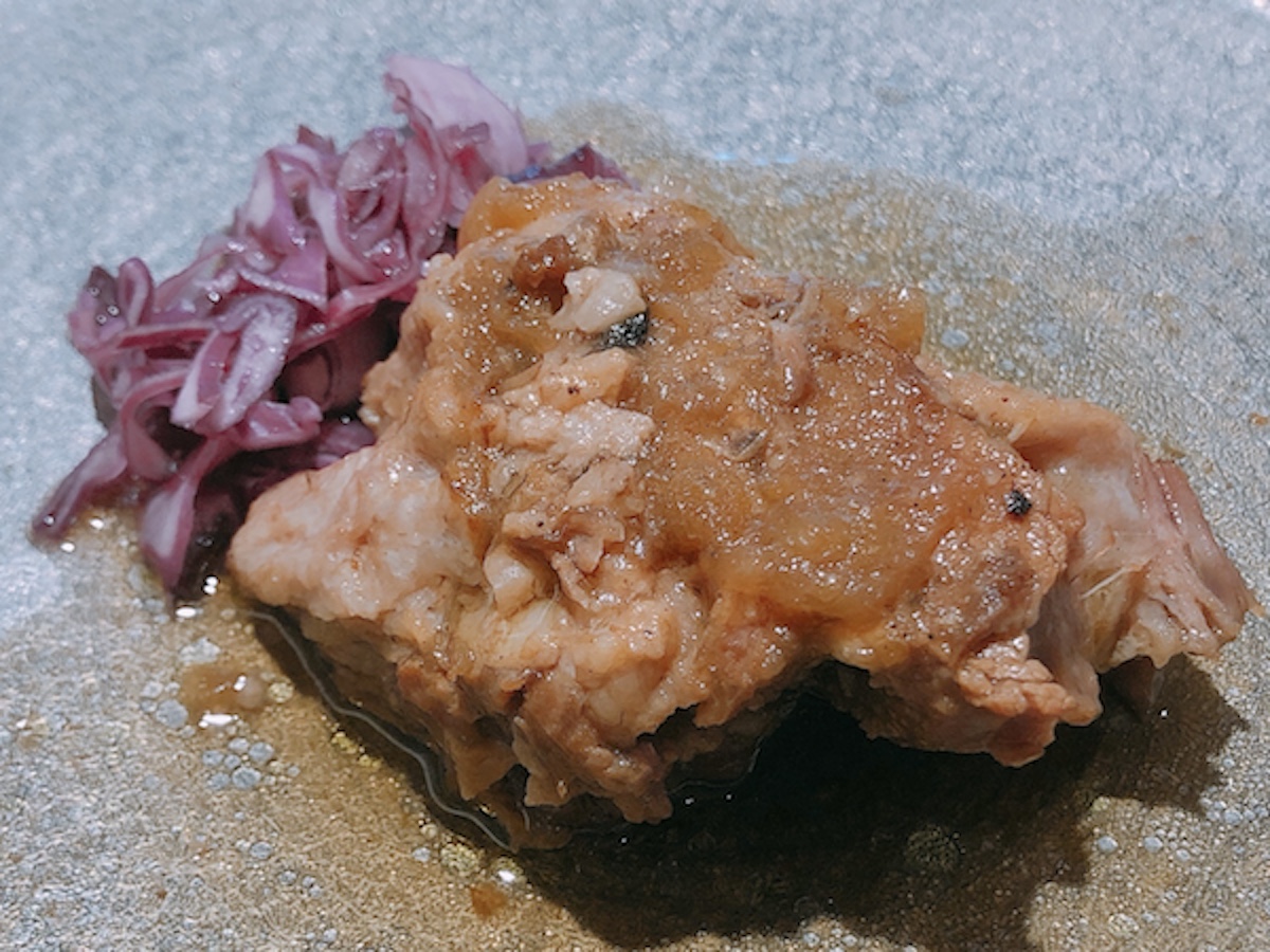岩中豚は脂身がおいしいのが特徴です。白ワイン、玉ねぎ、生姜でひと晩煮込んだお肉はほろほろとした口どけとさっぱりした脂身の甘さがたまりません!生姜焼きと言えば欠かせない千切りのキャベツも「BIRTH DINING by plein」らしくひと工夫凝らし、お料理にあった紫キャベツのマリネに変えています。