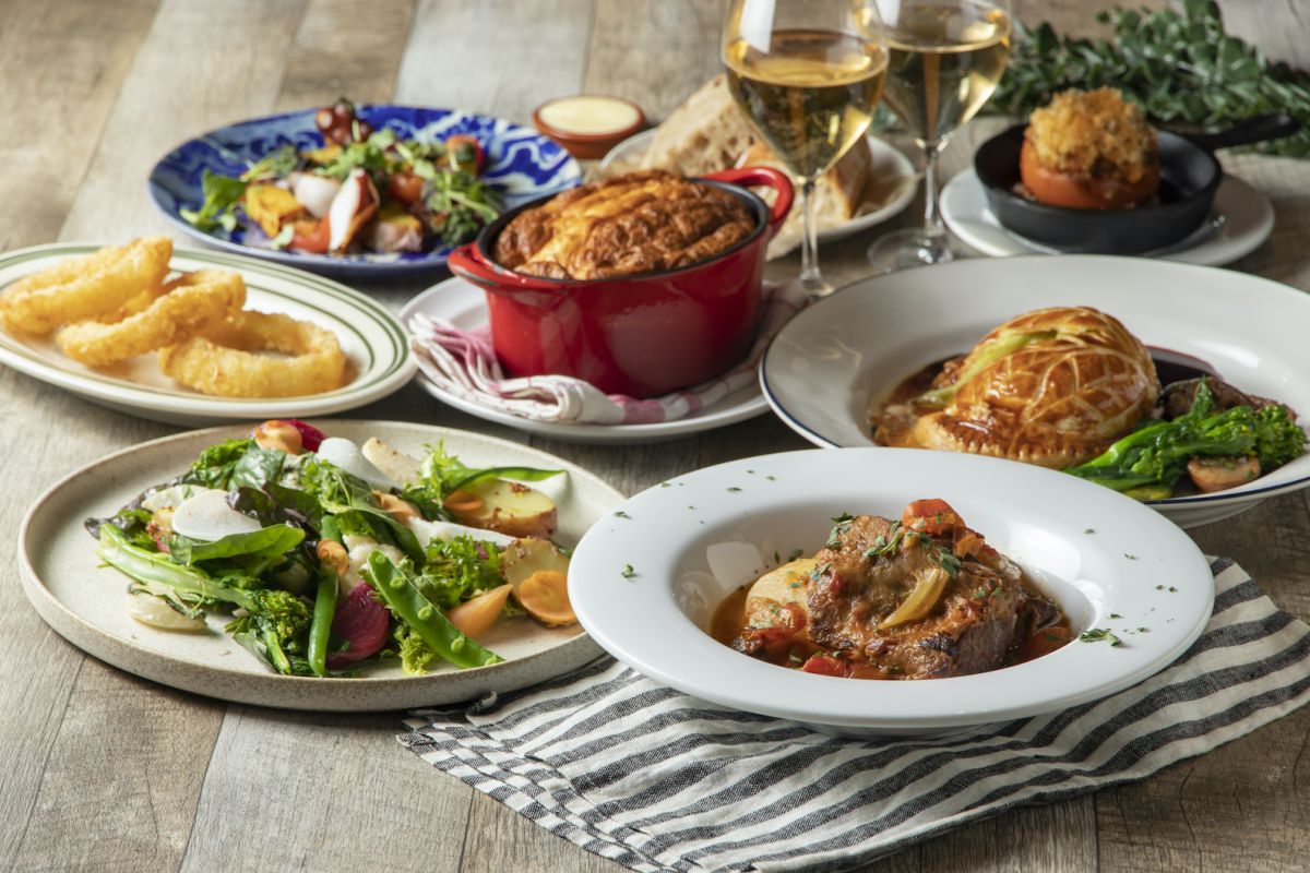 「高槻あぐり」の旬の野菜をたっぷり使ったサラダや、フォアグラ入りパイ包みなど、ディナー限定メニューも豊富。家族やグループでシェアして味わうのにぴったりです。