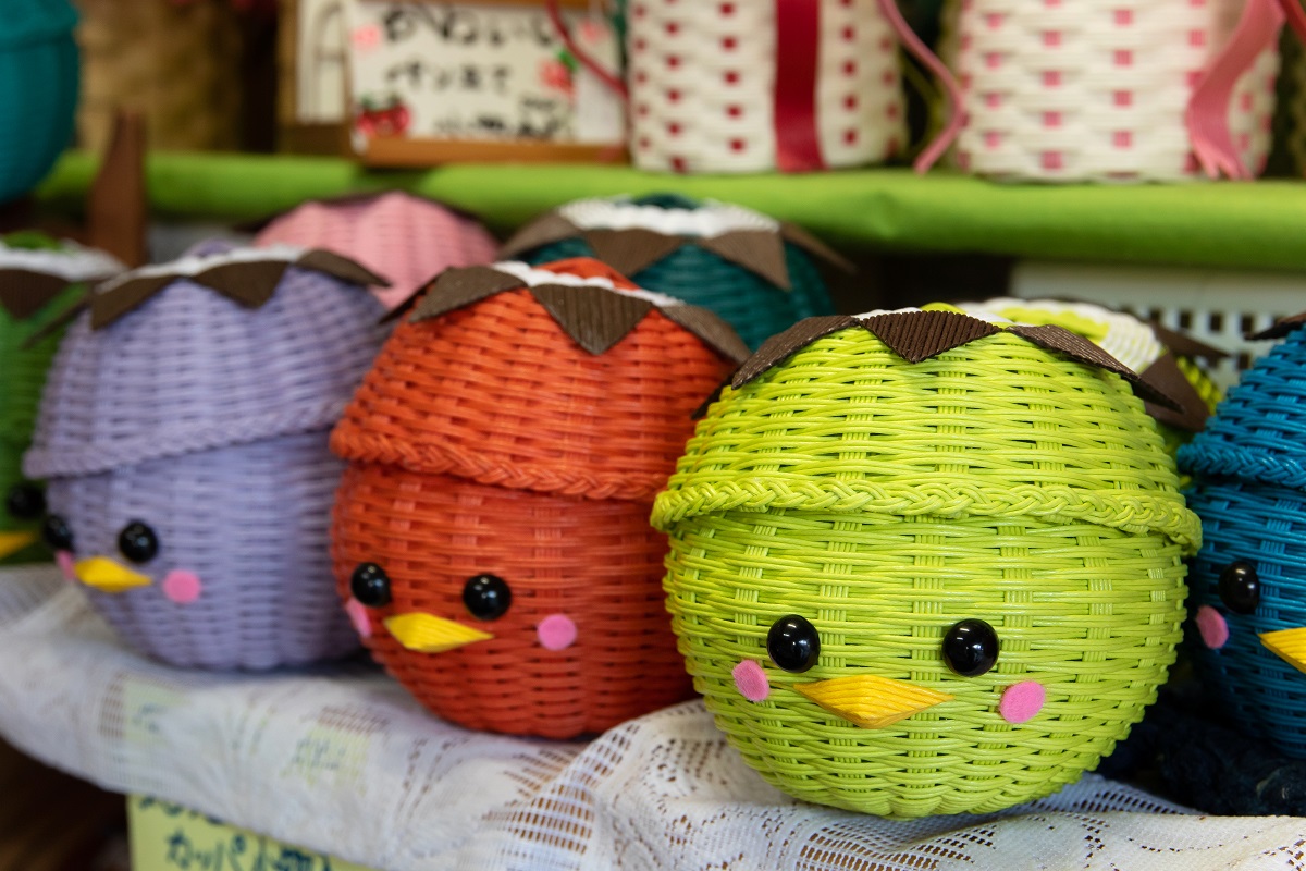 続いてのスポットは「マヨイガの郷」。地元のお母さんやおばあちゃんたちが作った小物がところ狭しと並ぶ雑貨店です。なかでも、クラフトテープで作るカッパや干支モチーフのキーホルダー、小物入れ、バッグなど、かわいらしいデザインや色使いにうっとり。お土産選びに迷ってしまいそう。