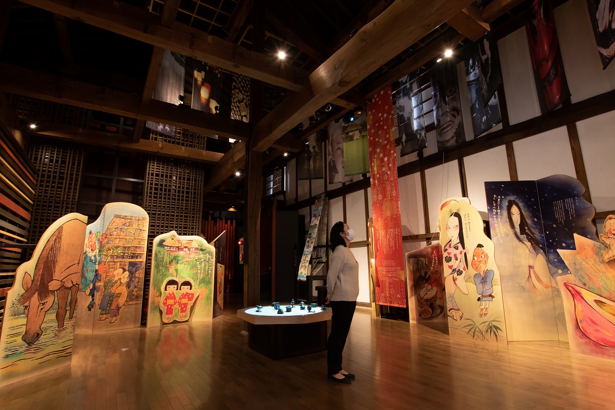 明治時代の酒蔵をリノベーションした「とおの物語の館」。遠野で語り継がれてきた昔話の世界を観たり、触れたりしながら体験・体感できる施設です。館内は、優しい明かりに包まれ、まるで物語の不思議な世界に足を踏み入れたかのよう。親しみやすい絵やオブジェとともに昔話を伝える展示がずらりと並び、語り部の話を聞くとさらに理解が深まり楽しさも倍増して、「遠野昔話」の世界にどっぷり浸かれますよ。