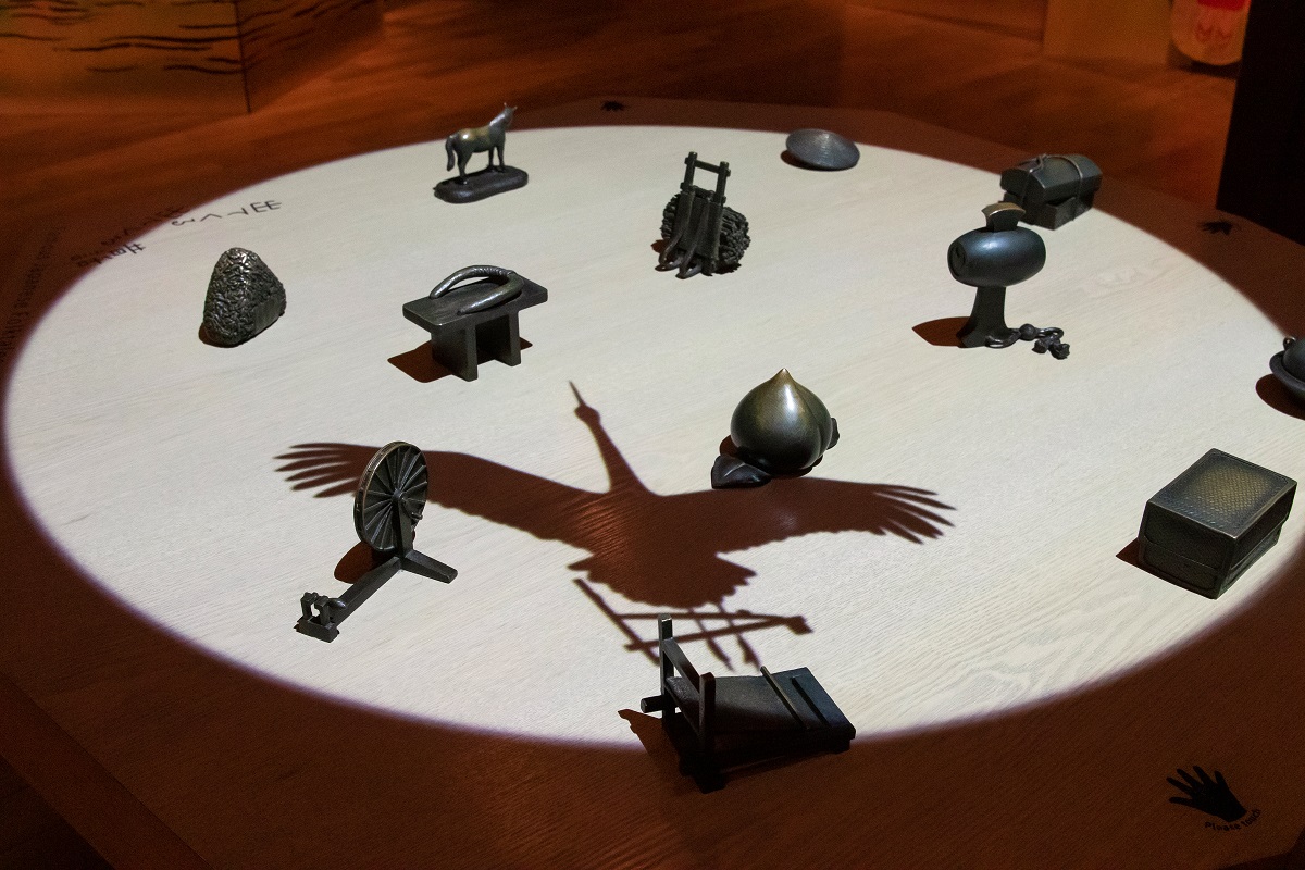 音、光、影を使った臨場感あふれる展示に大人も思わず興奮。手で触れると、物語にちなんだ音と影絵が飛び出す不思議な置物は人気の展示です。カッパやツル、タヌキなど影絵を見て「あの昔話だ!」と気づくと、友だちに教えたくなっちゃいますね。