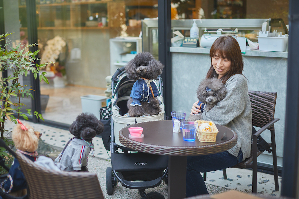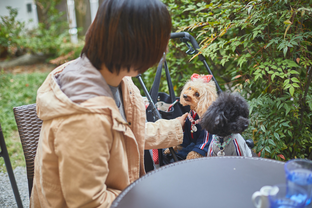 お庭に設けられた2つのテラス席は、愛犬の同伴が可能! 緑豊かな京都御苑の近くなので、わんことの散歩帰りに、寄り道するのにちょうど良さそう。