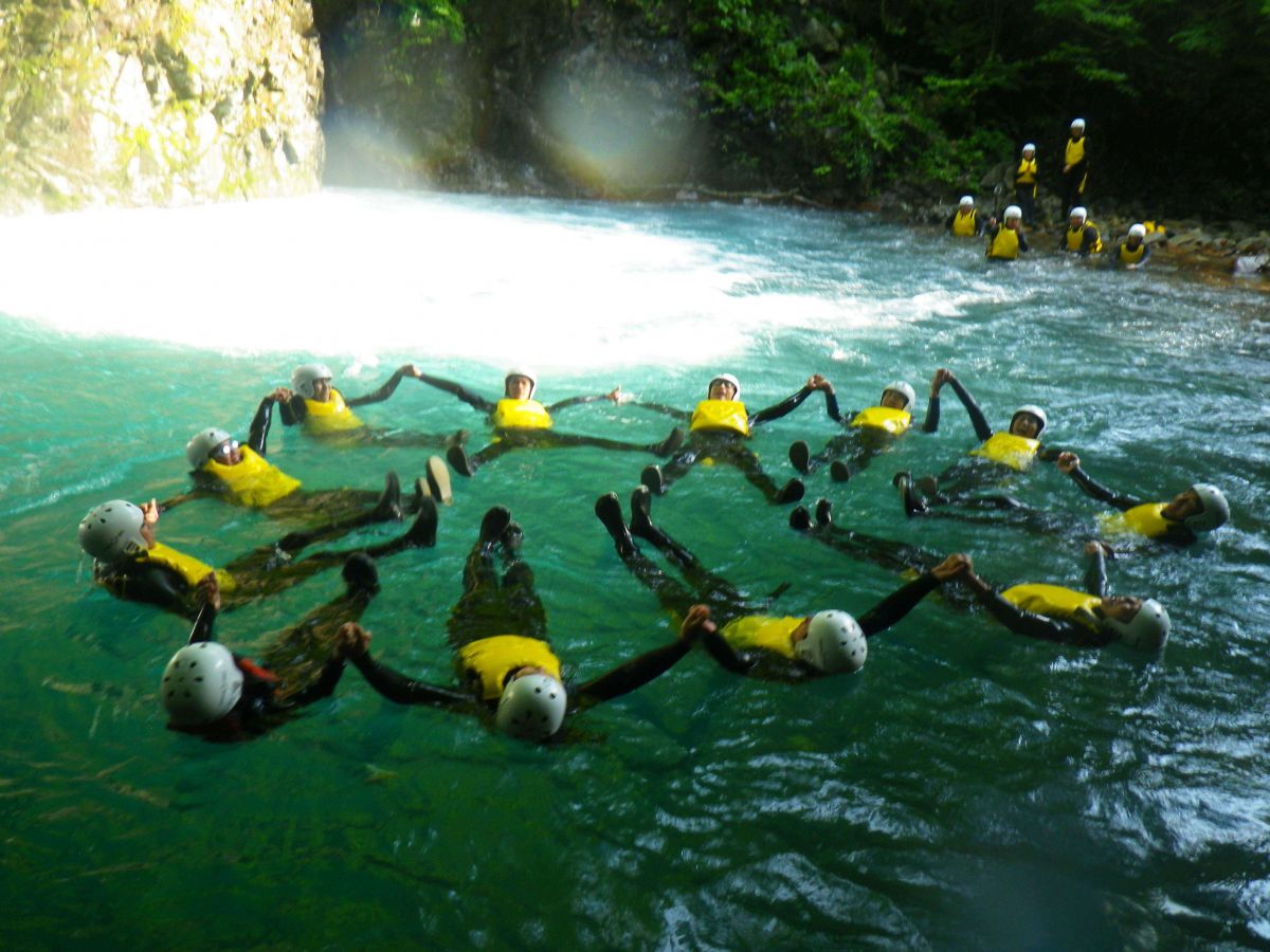 しかも、このエリアで開催しているのは「グリーンディスカバリー」のみだそう!ほぼ貸し切りのフィールドでガイドさんが安全にツアーを行ってくれる「四万 キャニオニング」。自然が色濃く残る渓谷、神秘的なブルーの水の中で遊び尽くしましょう!