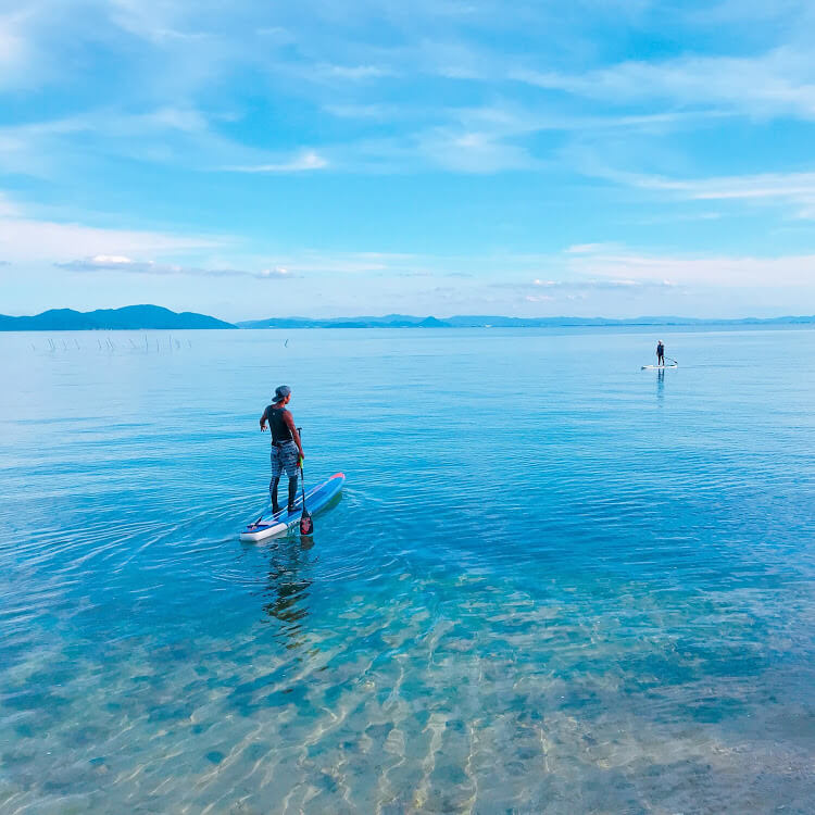 「颯浮(さっぷ)~KYOTO SUP TRIP~」で開催されているアクティビティでは、そんな美しい「琵琶湖」で最近人気のSUP(サップ)を体験できるコースが人気なんです!専用のボードに立ちパドルを使って漕ぎ進むSUPは、全身で湖を体感できます。