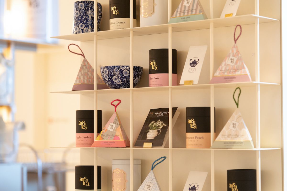 「TEA ROOM KIKI」でいただけるのは、2003年に設立された紅茶ブランド「amsu tea(アムシュティー)」の紅茶。スリランカ産の紅茶を中心に、日本人の味覚や日本の軟水に合う極上の茶葉を厳選。何種類もの果物や花の香りを茶葉に移した、「amsu tea」 自慢のオリジナルブレンドフレーバーティーは、どれも華やかで豊かな味わいです。