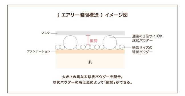 コロナ禍によってでてきた“マスクによるメイク悩み”も解決!ファンデとマスクの間に「隙間」をつくる独自技術によってマスクが汚れにくくなっています。マスク内の通気性も高まるので、蒸れによるメイク崩れも防いでくれるそう。きれいなだけでなく、快適に過ごすことができそうです。