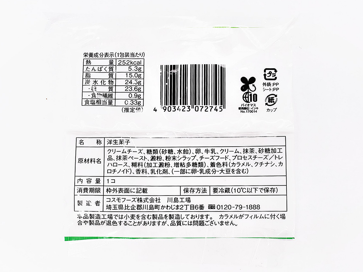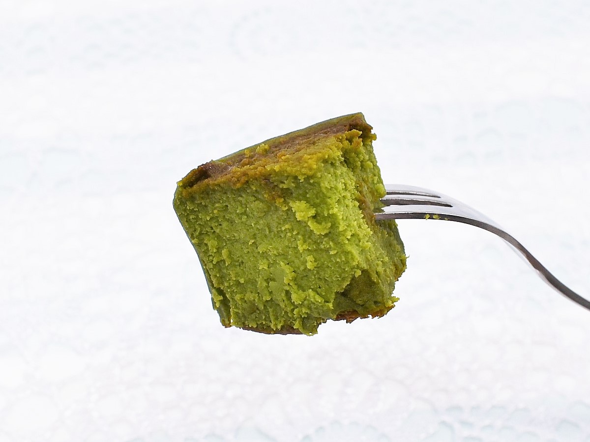 甘味好きに高い人気を誇る抹茶スイーツ。抹茶は和風スイーツだけでなく、どんなジャンルと掛け合わせてもおいしいですよね。今回購入してきたのは、「バスチー -バスク風抹茶チーズケーキ-」(225円)です。バスク風チーズケーキとは、外側を黒く焦がした見た目と濃厚な風味が特徴のチーズケーキ。抹茶と組み合わせることで、どんなコラボレーションをみせてくれるのでしょうか。