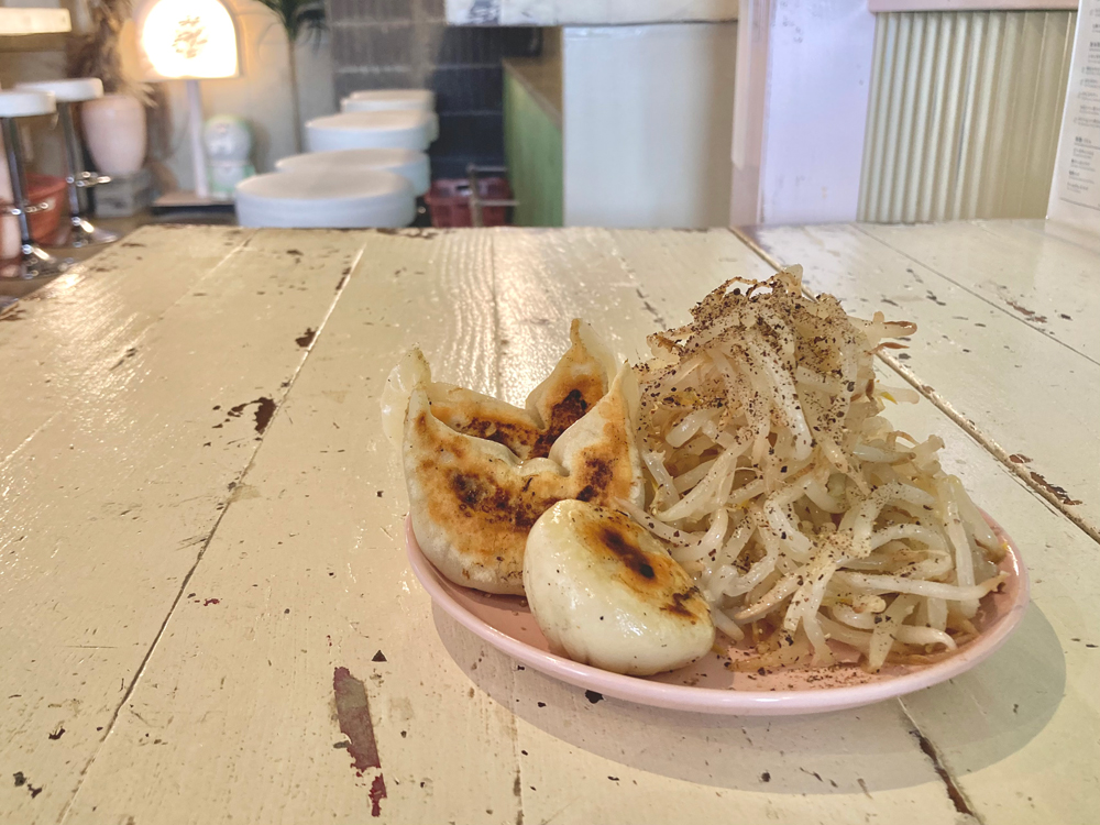 東京メトロ・淡路町駅から徒歩3分。赤ちょうちんの居酒屋が並ぶ通りで、ひときわ目を引くパステルカラーのお店が「トーキョーギョーザクラブ」です。