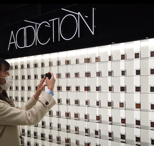 人気の「ザ アイシャドウ」が一面に並べられたフォットスポットは、「アディクション」のパーソナルアドバイザー(PA)もおすすめの写真映えスポットです!カラーのバリエーションが豊かな壁を眺めているだけでも楽しいスペース。来店した記念に自分の携帯で写真を撮りたくなります♪