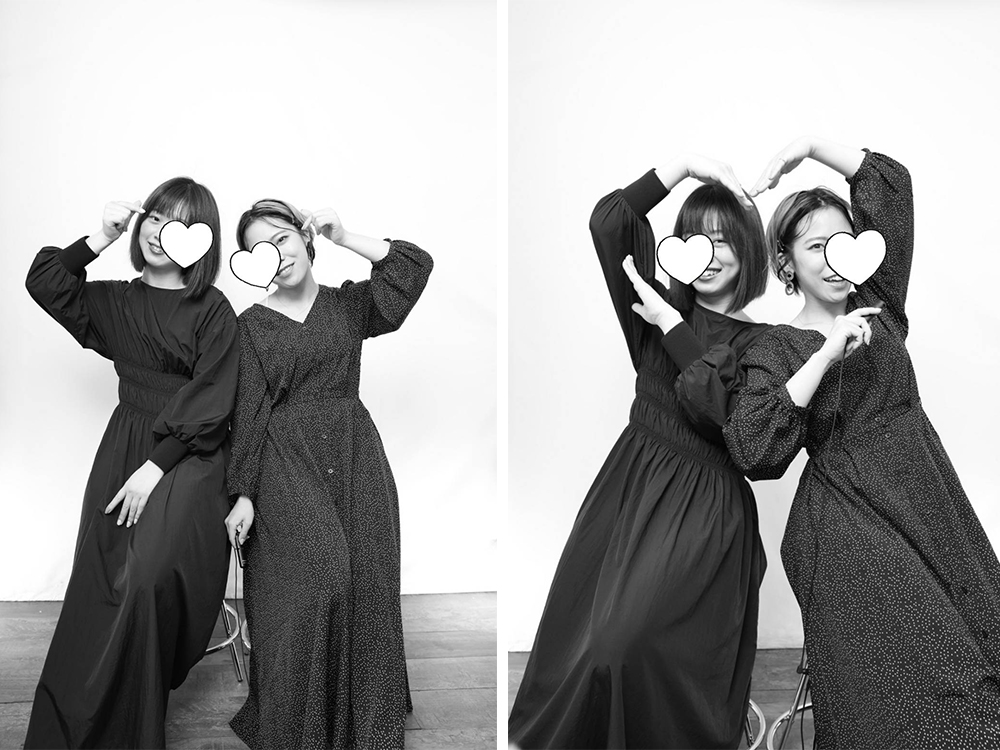 定番のきゅんポーズはもちろん、二人で大きなハートをつくったり、CDジャケットのようにクールな表情で決めてみたり…コロコロとポーズを変えながら次々とシャッターを押していきます。
