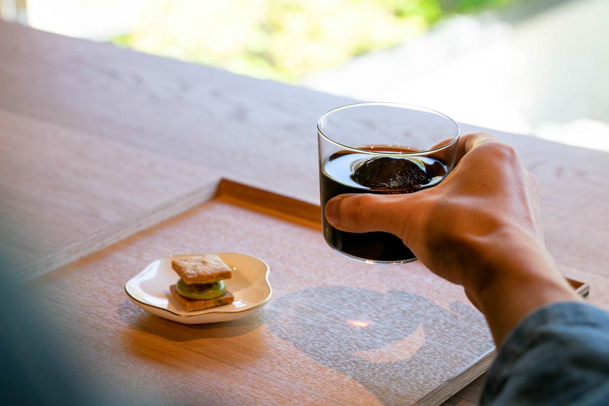 最後に提供されるのは水出しコーヒー。水でゆっくりと抽出することで苦味やエグ味が出にくく、すっきりとした風味が楽しめるのが特徴です。