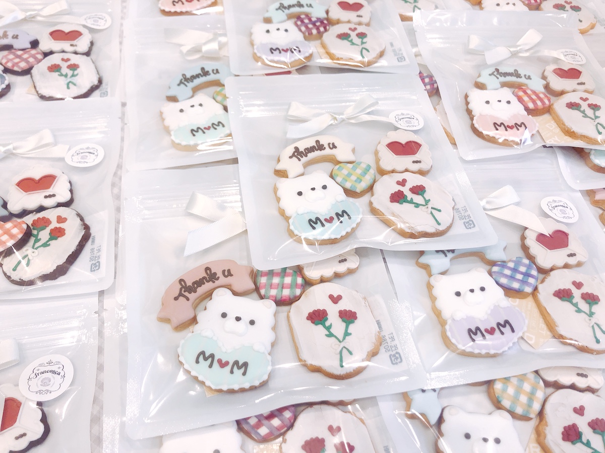 取材時は母の日に向けたクッキーが販売されていました。癒される白くまとアンティークをイメージしたカーネーションのクッキーなどがセットになった「もこもこ白くまのアイシングクッキーセット」2600円(税込)は、食べるのがもったいないほどの完成度!プレゼントすれば喜ばれること間違いなしのセットです。