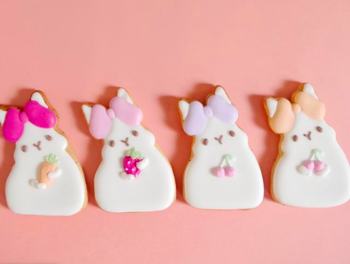 シーズンごとに変わる季節限定品。取材時は春〜夏にかけて作られたクッキーが販売されていました。「リボンうさぎのアイシングクッキー」1個600円(税込)はイースターをイメージして作られたもの。色違いのリボンがキュート!こちらを見つめる姿に思わずキュンとしちゃいます。