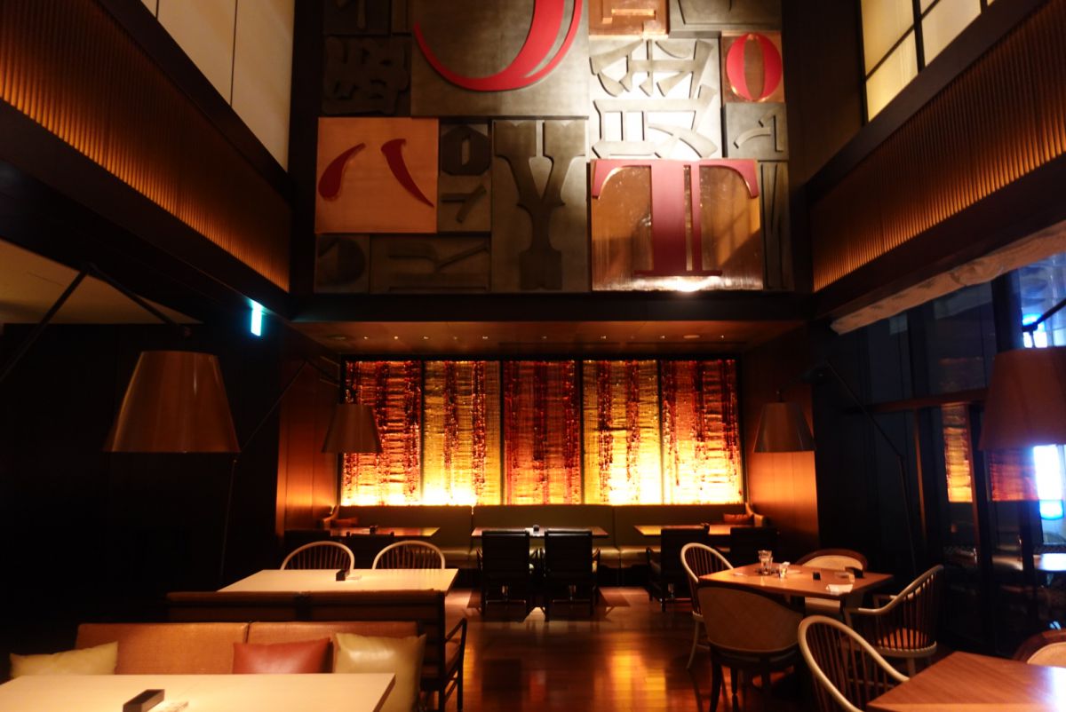 ディナーをいただけるのは、ホテル3階にあるオールデイダイニングの「NAMIKI667」です。吹き抜けの活版文字の印象的なデザインは、かつてここに新聞社の社屋があったことによるもの。