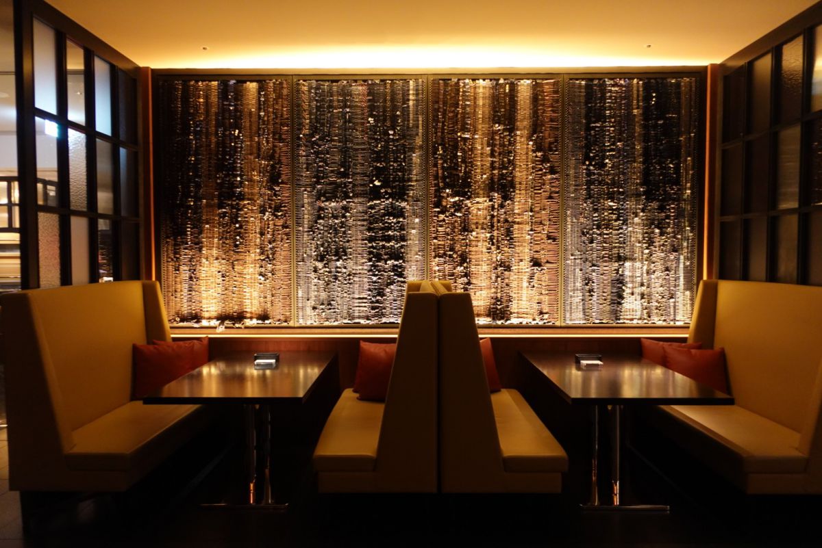 私が座った席の真横にも、ボタンやネクタイ、着物など衣服でできた壁面アートが!ファッションをモチーフに、ここでも銀座を象徴するデザインを楽しむことができます。