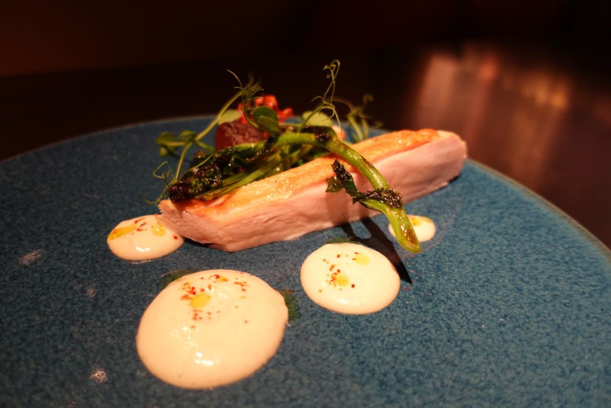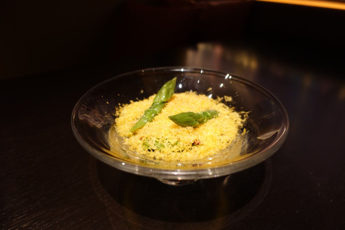 中でも心に残ったのが、「グリーンアスパラガスのサラダ 18ヶ月熟成ミモレットチーズ」。なんと中にポーチドエッグも入っていて、とろっとろの卵とチーズで味わう、旬のアスパラガスがたまりませんでした…。