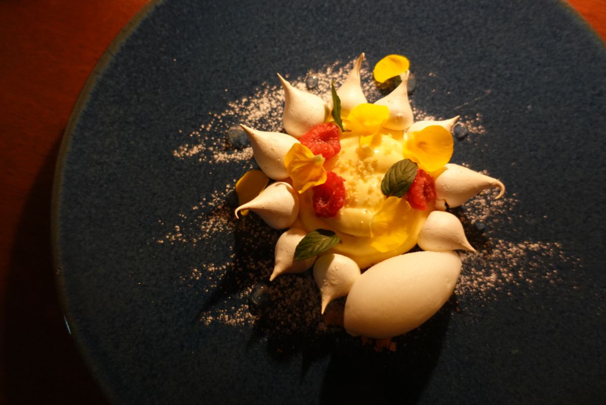 「タルトシトロン レモンソルベ」を頼んだのですが、太陽のような美しい盛り付けにうっとり。大好きな酸味のあるレモンの甘酸っぱさが感じられて、こんなに幸せな夜はない!と一瞬一瞬を噛みしめました。