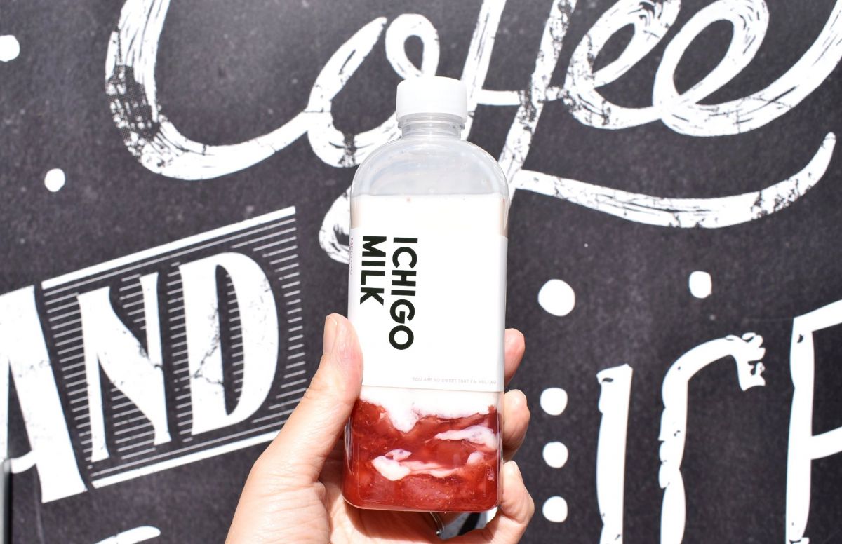 スタイリッシュなデザインのボトルには、北海道産の牛乳とつぶつぶとしたイチゴの果肉が入っていて美しい彩り。お味は、大人でも楽しめる控えめの甘さに仕上がっているのがうれしいですね!