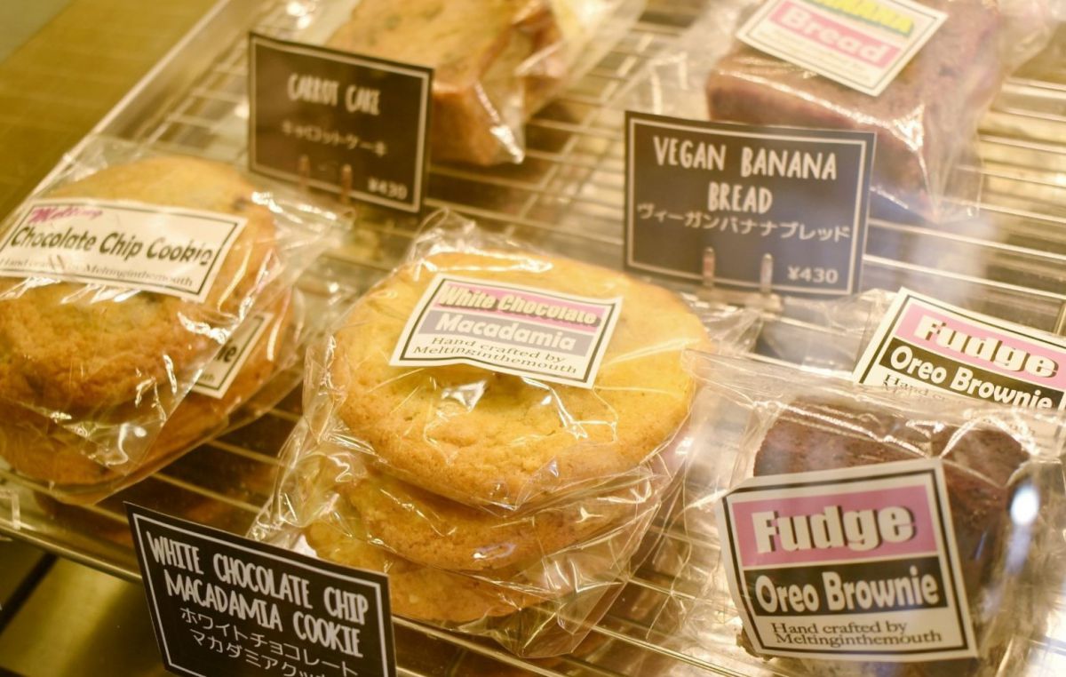 レジの横には、日本ではなかなか見かけないサイズのクッキーなど、NYスタイルの焼菓子もずらり。身体にやさしいオーガニック小麦で作られていて、そのおいしさからリピーターも多い商品なんだとか。