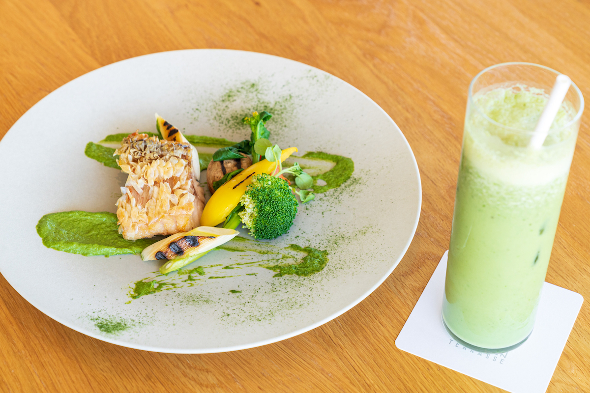 レストラン「MOON TERRASSE」では、今回のリニューアルに合わせ、ヘルシーなメニューを提供。有機農業に取り組む自社栽培の野菜と、地域食材を使用した料理やドリンクを味わうことができます。これらの癒やしの体験を堪能できる宿泊プランも登場。また、レストランは宿泊客以外も利用ができるので、ぜひチェックしてみてください。