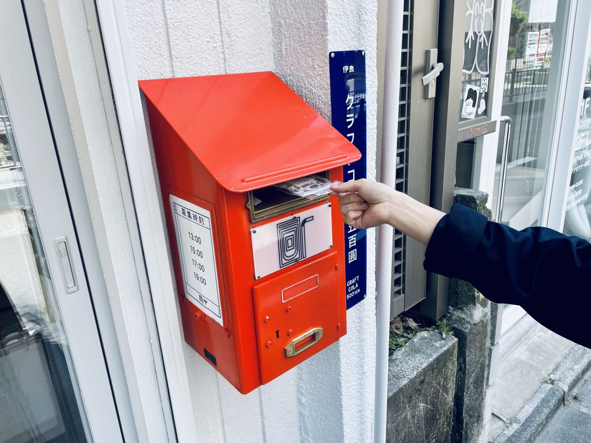 飲み終わった後のゴミ捨てまで楽しんでほしいという思いから取り付けたそう。ポストの側面には、ゴミ回収の時間が書いてあったりもして遊び心満載です!