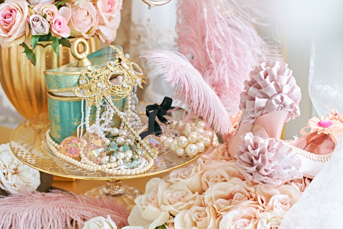 スイーツを楽しみながら眺めてほしいのが、アイコニックなマカロンタワーや、マリー・アントワネットのファッションを彷彿させるハット、アンブレラ、ドレス、ハイヒールなどでデコレーションされた店内に装飾。