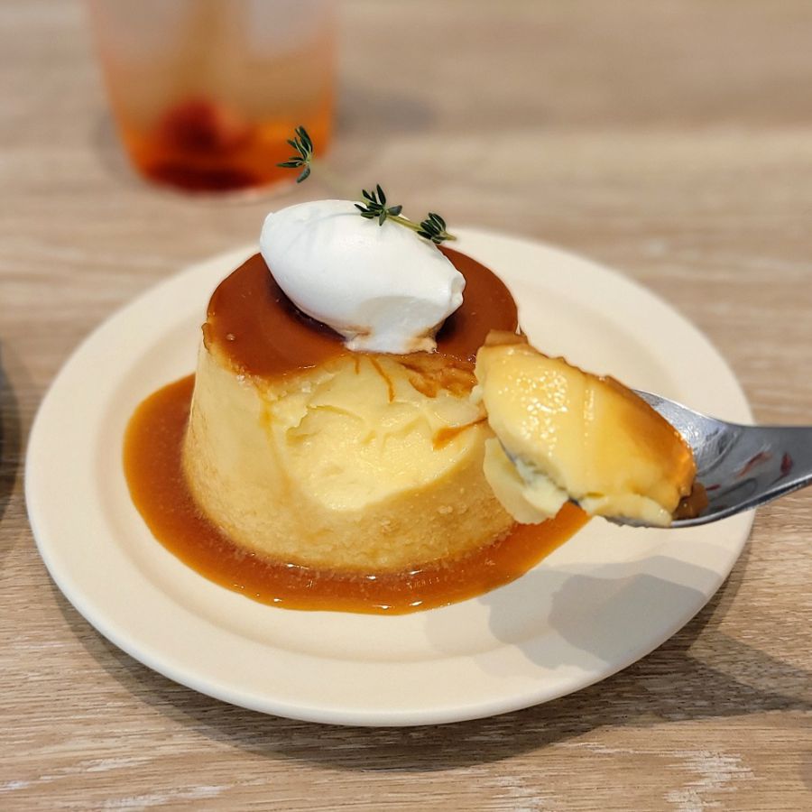 なんと外側と中心の食感が違う楽しいプリン。外側は固めで、中心部はなめらかなプリンです。