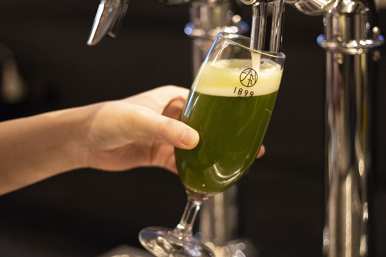 ビアガーデンの一番人気「抹茶ビール」は、丁寧に注ぐことで超クリーミーな泡を実現。