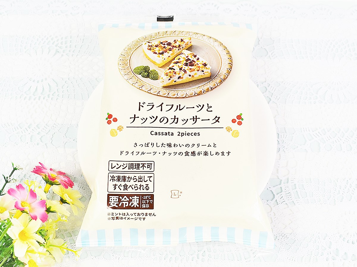 初夏を迎えてだんだんと気温が上がってきた今日この頃。つい食べたくなるのが、アイスやジェラートなどの“ひんやり系スイーツ”です。そんな中ローソンから、オリジナル冷凍食品「ドライフルーツとナッツのカッサータ」(399円)が新登場しました。あまり聞き馴染みのない名前ですが、一体どんな味わいなのでしょうか?