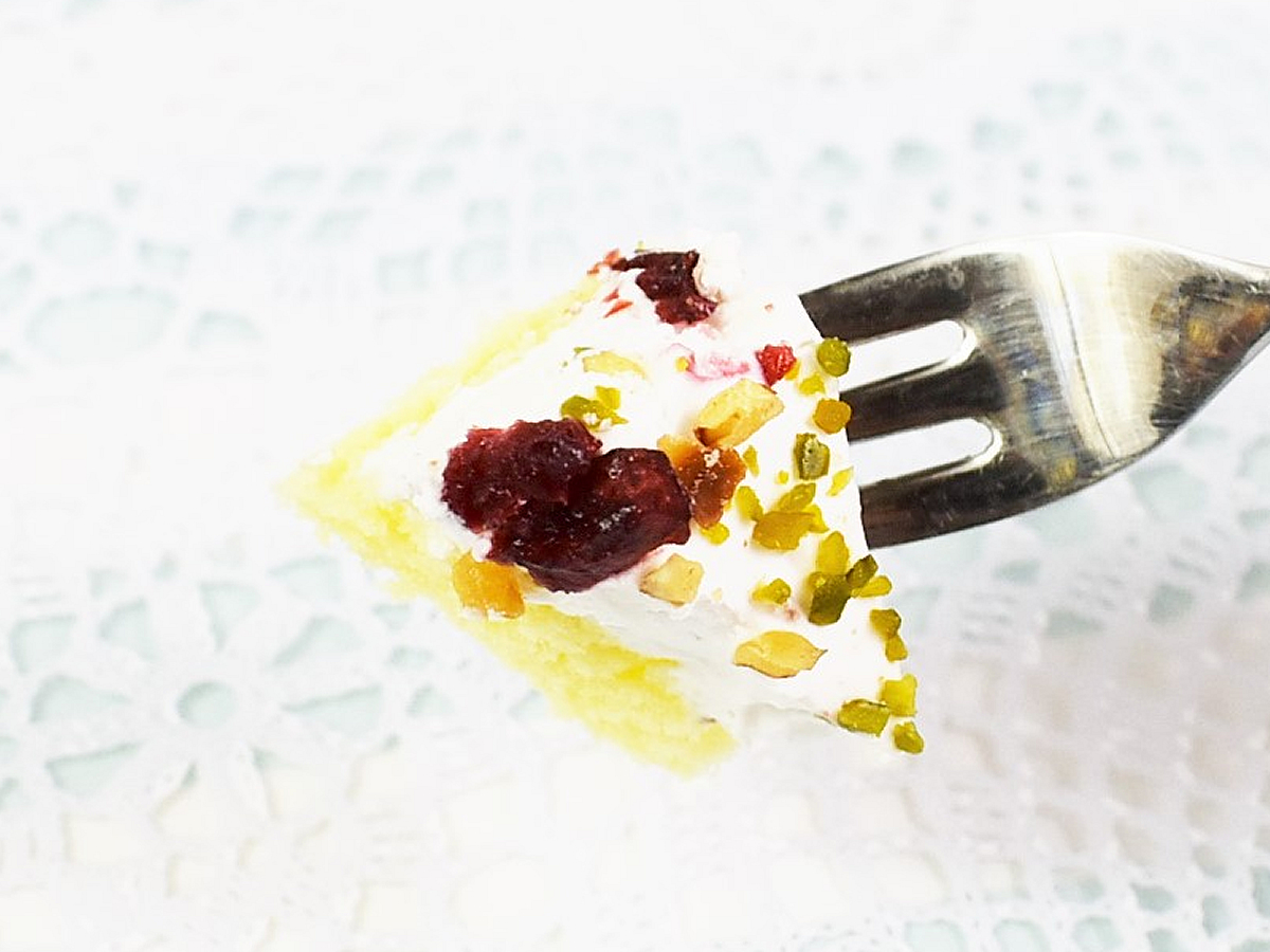 リコッタチーズを使用したクリームは、チーズとレモンの風味が香る爽やかな味わい。凍って固まったクリームのシャリシャリとした食感がたまりません。さらに甘酸っぱいドライフルーツと香ばしいナッツの風味が口いっぱいに広がりました。さっぱりした優しい甘さなので、甘いものが苦手な方でも食べやすそうです。
