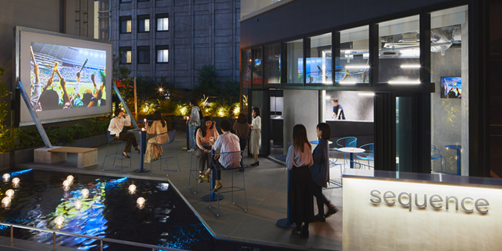 今年MIYASHITA PARKや京都にオープンした話題のホテルが、2020年11月25日(水)水道橋にも誕生!水道橋駅から徒歩1分で、東京ドームもすぐそばに位置する「sequence SUIDOBASHI(シークエンス スイドウバシ)」。ゲスト同士が感動・興奮・喜びの“瞬間”につながる場所を提供したいという思いから、屋外のテラスには大きなスクリーンがあり、お部屋でもプロジェクターで好きな映像を投影可能。イベント後の興奮を冷めることなくキープできちゃいます!