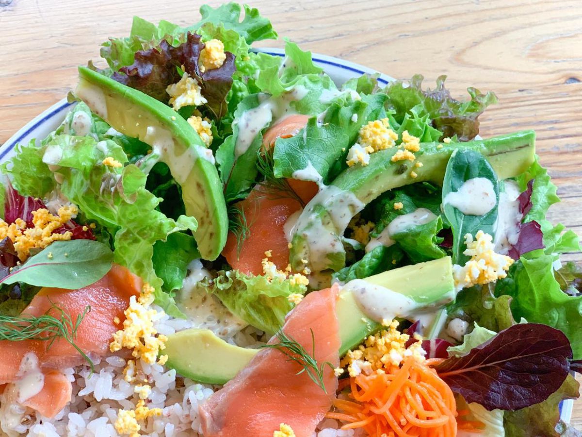 人気のヘルシーなフードメニュー!表参道店限定「サラダライス サーモン&アボカド」