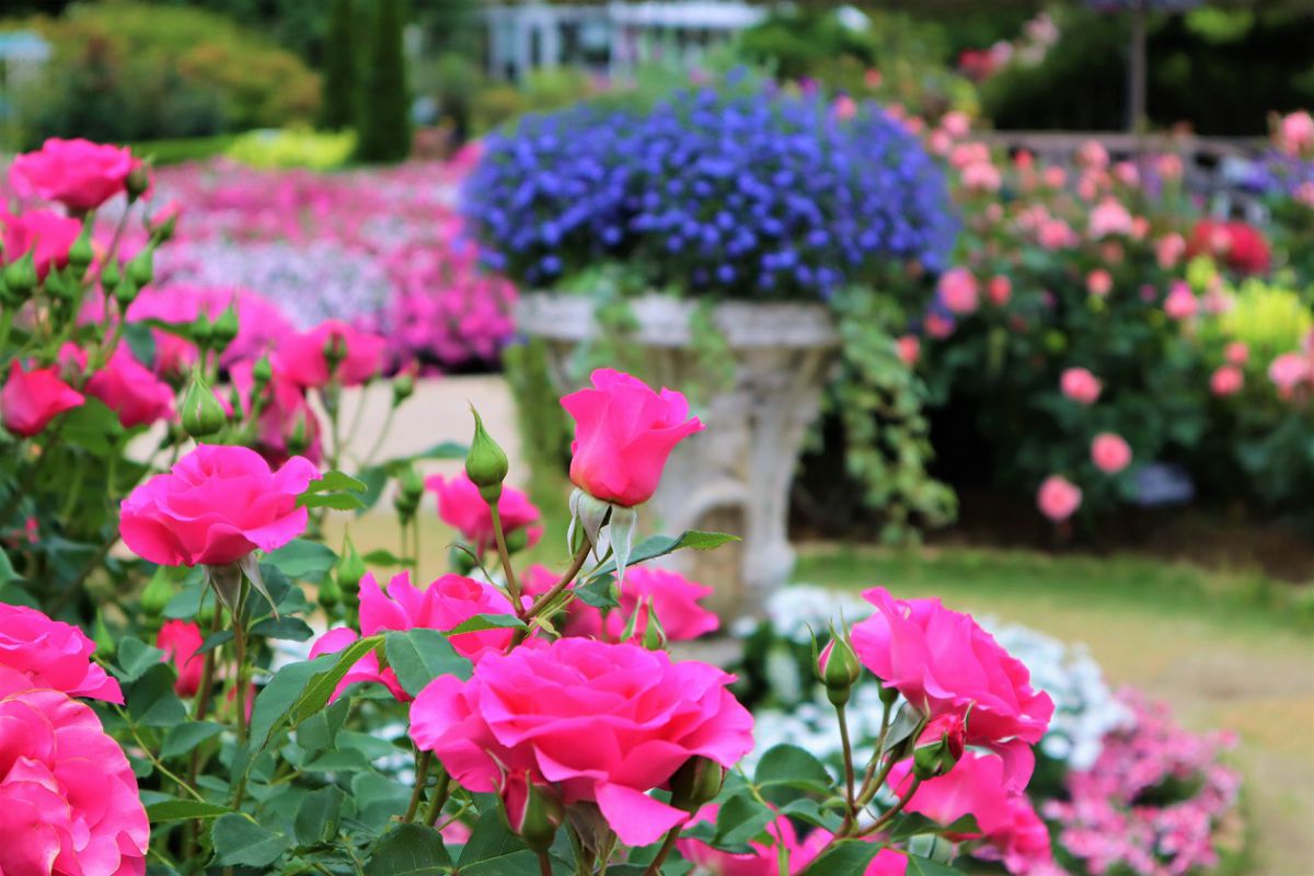 種類も豊富で、赤、黄、オレンジ、青、白など色鮮やかなバラで埋め尽くされます。バラの香りが一面満たされ、優雅な気分になれる光景が非日常にいざないます。
