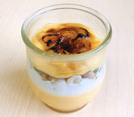 「Noix」(1階)には、表面はブリュレしてあり、カスタードクリーム・5種のナッツ、生クリーム、プリンの4層で色々な食感が楽しめる「木の実のプリン」(540円)も。6月1日(火)までの販売です。