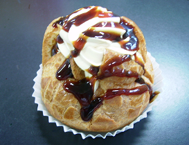 「アンリ・シャルパンティエ」(地階)の「プディング・シュー」(324円)は、シュー生地の中にプディング、カスタードクリーム、クレーム・シャンティー(泡立てたクリーム)を仕込んだボリュームたっぷりスイーツ。