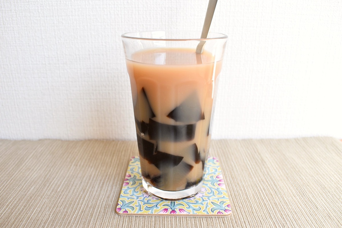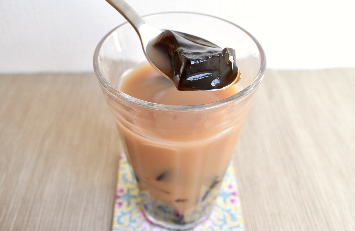 ぷるんと弾力のある仙草ゼリーは、漢方のような独特の風味に、かすかな苦みもあってクセになる味わい。ゼリー自体に砂糖も加えられているため、甘みもあって食べやすいのもいいですね。ミルクティーに入れるほか、シロップやコーヒーフレッシュをかけていただいてもおいしいですよ。