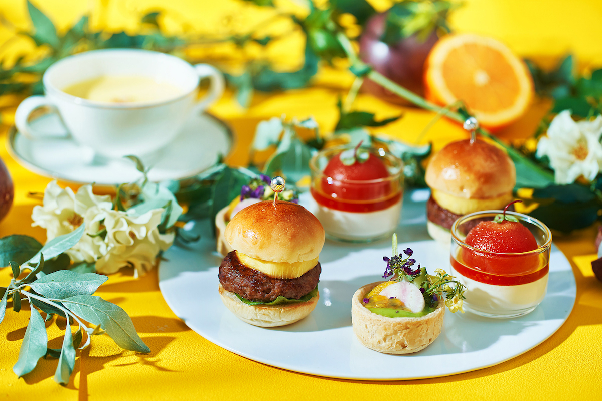隣接するフレンチレストランより提供される4種類のセイボリーもお見逃しなく!「トウモロコシのポタージュ」、「 パイナップルとBBQソースハンバーグのミニバーガー」、「モッツァレラチーズのムースとトマトのシャーベット」、「サラダクリュディテ」と、スイーツに負けない豪華なラインナップです。「ニューヨークラウンジ」と「ハドソンラウンジ」にて提供されています。