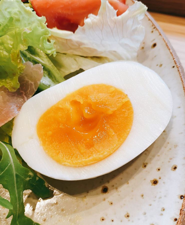 ゆで卵は平飼い卵を使用しており、黄身の濃厚さに驚かされます。添えられている自家製のマヨネーズにイエローホットペッパーペーストを加えたソースにつけて食べると、ちょっとぴりっとした味わいも楽しめるんです!