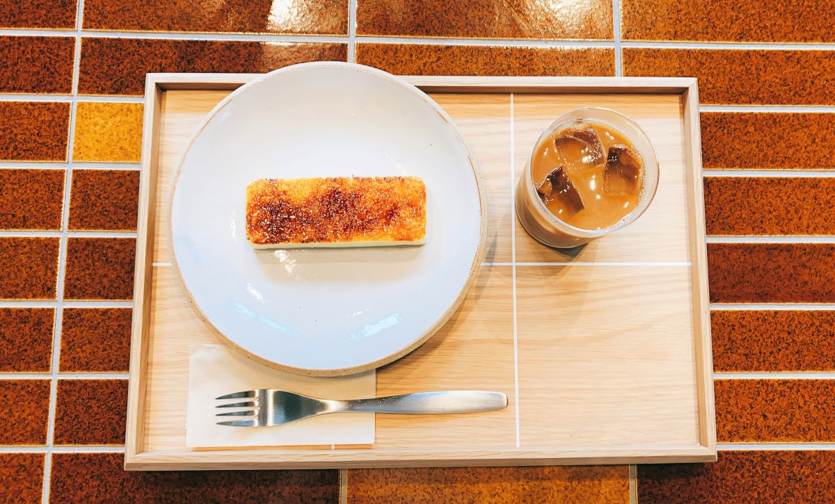 次に頼んだのは、こちらも渋谷カフェ限定メニューで、パティシエユニット「Tangentes」をアドバイザーに迎え開発された「ブリックチーズケーキ」605円(税込)。こちらは13時からの提供になるので、ご注意を!