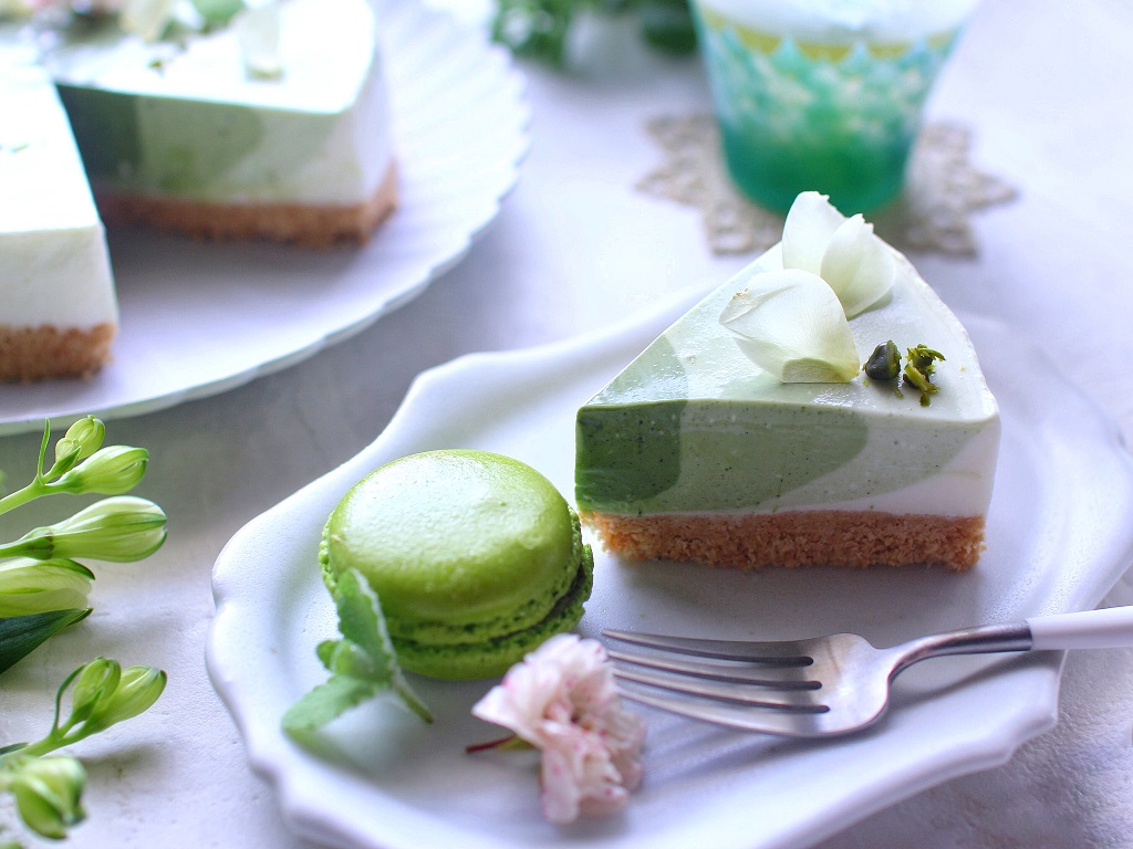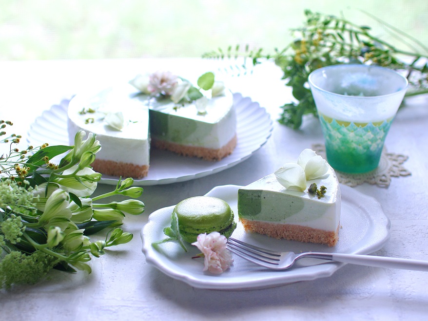 新緑の季節に。オーブン不要の抹茶のグラデーションレアチーズケーキ【kyoko_plusのレシピ&テーブルコーデvol.32】