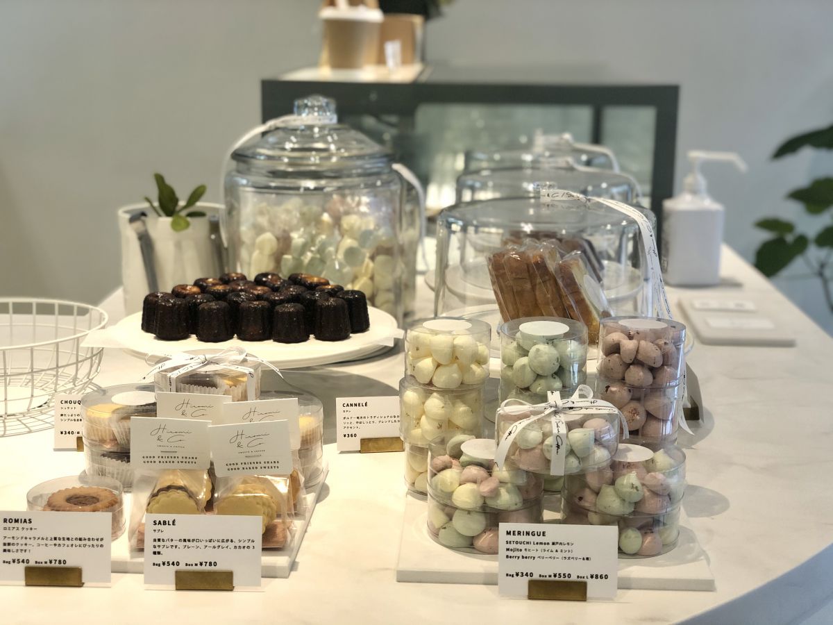 JR馬喰町駅から徒歩3分のエリアにある「Hiromi&Co.(ヒロミアンドコ)」は、白い壁と大きなガラスの扉が印象的なお店。お店の外からでもたくさんのお菓子が並んでいる様子が伺えます。