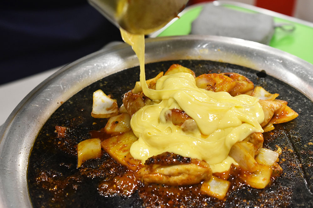 女子にはたまらないチーズたっぷりの「チーズタッカルビ」もテーブルでの提供。チーズがフツフツと溶けていく姿がたまりません♪
