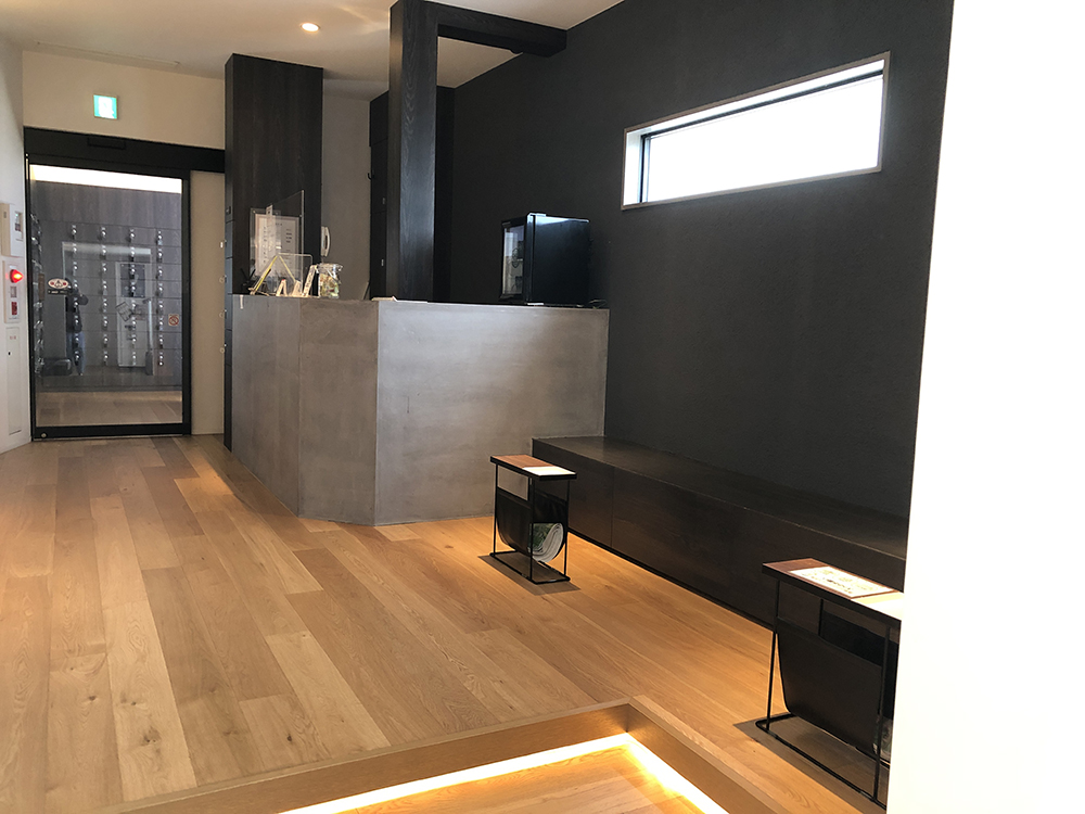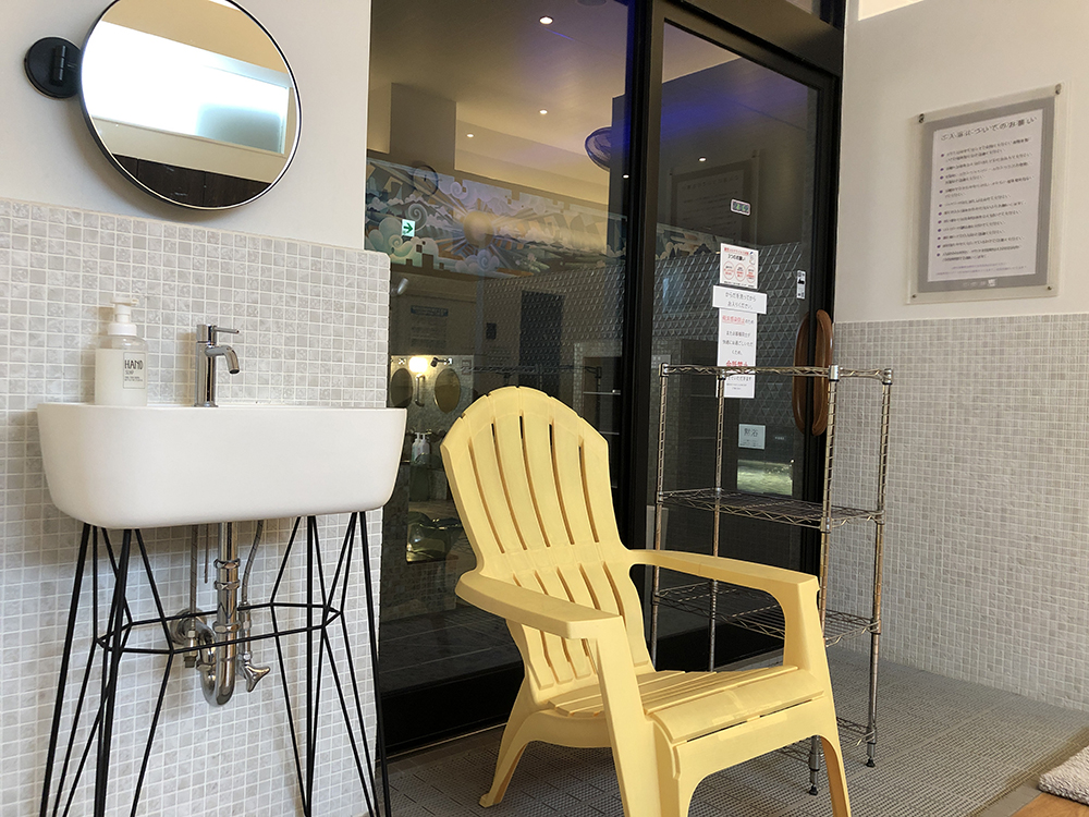 銭湯といえば「番台」ですが、こちらはレセプションと呼びたくなるような落ち着きのあるおしゃれなフロントです。