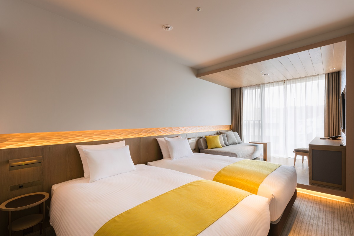 120cm幅のシングルサイズベッドを2台設置し、自宅のようにくつろげる、縁側をイメージした小上がりがついているスーペリアツイン。